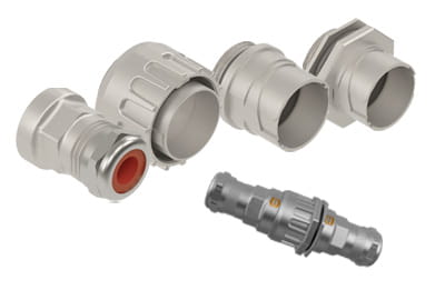 The new ICC connector type is HARTING's interpretation of the MIL connector. The ICC connector consists of housings, a contact assembly, and contact pins. The main difference between the ICC connector and a standard MIL connector is the housing and contact assembly, which can be customized as needed.