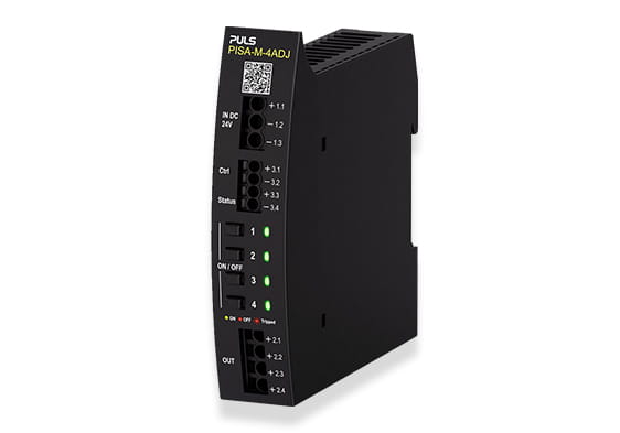 PISA-M is a 4-channel electronic fuse for 12 and 24 V DC systems. The smallest 4-channel electronic fuse with a width of only 22.5 mm. Despite its small size, PISA-M is packed with useful features. Push-in connectors enable quick and easy installation, and multi-colored LEDs show the status of each channel in real time. Each channel is equipped with buttons for switching the outputs on and off and for setting the current values and the trip curve. In addition to the adjustable version, versions with fixed current values are also available.
