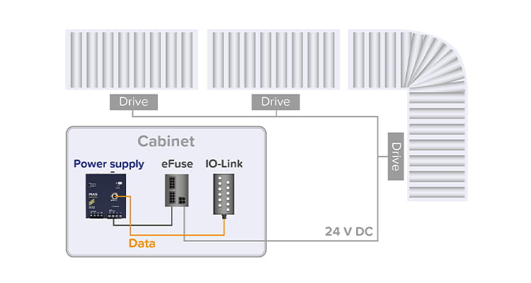 Thanks to the integrated, current-limited outputs in the FIEPOS eFused series, no additional protection module is required. This saves space in the system. In addition, centralized control cabinets and decentralized on-site control boxes can be reduced and the space can be used to expand the system. Fewer components also mean more free space in the warehouse.