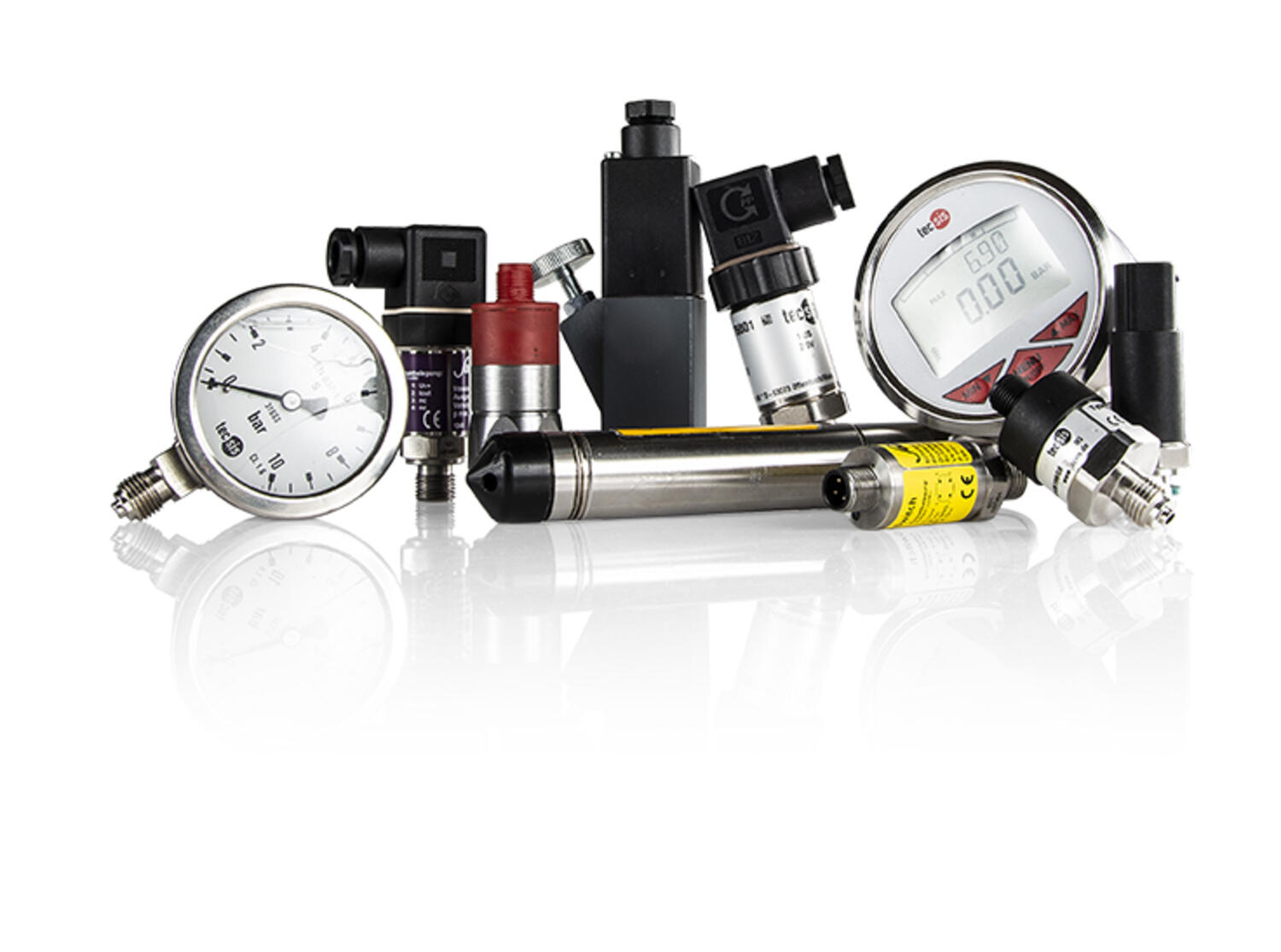 The range includes analog and digital pressure gauges that can be connected to various pressure transmitters. The gauges are also available with liquid damping and a filling material suitable